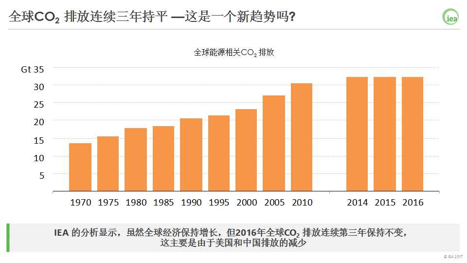 2016年,世界上最大的兩個能源消費國和碳排放國-美國和中國的 CO2排放都在降低,歐洲則保持平穩(wěn),這抵消了其他大部分國家的增長。