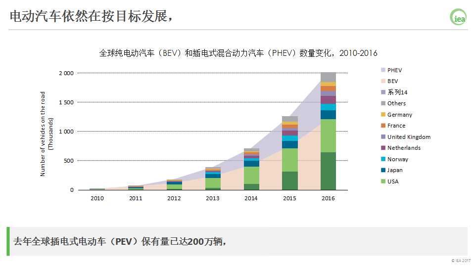 2016年乘用車電氣化方面又創(chuàng)了新的記錄,共銷售了75萬輛電動汽車(EVs),將全球的保有量提高到200萬輛。
