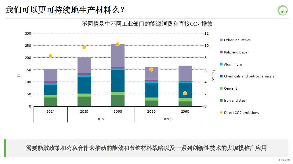 雖然工業(yè)部門在能效和低碳技術(shù)使用方面不斷進步,但工業(yè)產(chǎn)量的增長必須進一步與能源消費和CO2排放“脫鉤”。