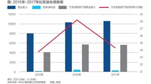 一季報(bào)顯示,比亞迪(002594.SZ/01211.HK)扣非后凈利潤為-3.29億元,同比下滑173.58%,這是2015年以來,比亞迪一季報(bào)中首次出現(xiàn)負(fù)值。而凈利潤也下滑了83.09%,達(dá)1.02億元。就在2016年,比亞迪營收首次破千億,扣非后凈利潤更是同比劇增282.34%。公司上下摩拳擦掌力爭次年進(jìn)入世界500強(qiáng)。
