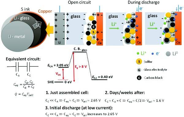 最近,來自于美國The University of Texas at Austin 的J B Goodenough 團隊在Energy & environmental science上發(fā)表了題為“Alternative strategy for a safe rechargeable battery”的文章報道了一種新型的玻璃態(tài)固體電解質,室溫下該電解質的的鋰離子和鈉離子的遷移率為10-2 S cm-1,并且能有效的抑制鋰/鈉枝晶的生長,大大提高了電池的安全性能。傳統(tǒng)的液態(tài)電解液使得電池的安全性能受到威脅,但是本文的提出通過在電解質表面鍍鋰/鈉層的方式提高全固態(tài)電池的性能。并且這種電池跟傳統(tǒng)電池的區(qū)別是,沒有了負極的脫嵌行為,而是在電解質作為反應中心提供反應的位置。