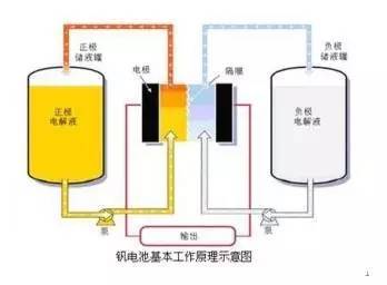 液流電池是一種新型的大型電化學(xué)儲能裝置,是利用正負(fù)極電解液分開,各自循環(huán)的一種高性能蓄電池,是目前的一種新能源產(chǎn)品。液流電池的電解液置于電堆外部,利用循環(huán)泵使電解液流經(jīng)電堆,二者發(fā)生電化學(xué)反應(yīng),從而實(shí)現(xiàn)化學(xué)能與電能的轉(zhuǎn)換以及電能的存儲與釋放。根據(jù)活性物質(zhì)的不同,液流電池可分為全釩、鋅/溴、多硫化鈉/溴、鐵/鉻等多種類型。