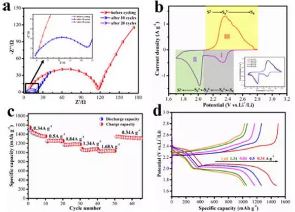圖2全石墨烯硫正極電池的電化學性能。