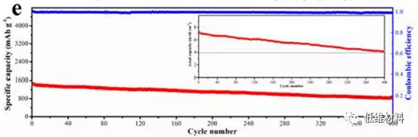 得到的全石墨烯正極中,因為HCG較輕,所以提高了電池整體的能量密度,POG能與多硫化物以化學鍵結(jié)合,抑制了多硫化物的穿梭效應,即使在400次循環(huán)后,電池仍有穩(wěn)定的循環(huán)性能,為更可靠的鋰硫電池提供了解決方案。