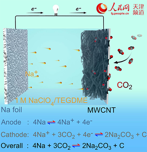 “可呼吸”電池的初級(jí)版本是鋰-氧氣電池,它以金屬鋰作負(fù)極,正極為由碳、貴金屬或過(guò)渡金屬氧化物等構(gòu)成的空氣電極,放電時(shí)從空氣中獲取氧氣,充電時(shí)再放出氧氣,因此被譽(yù)為“可呼吸”電池。鋰-氧氣電池的研究是當(dāng)今新能源領(lǐng)域的熱點(diǎn)和難點(diǎn),國(guó)內(nèi)外許多高校和研究機(jī)構(gòu)都致力于此。陳軍課題組在之前鋰-氧氣電池研究的基礎(chǔ)上,此次成功研發(fā)出鈉-二氧化碳電池,不僅原料豐富、制備方便,增加了實(shí)驗(yàn)過(guò)程中的安全性,同時(shí),二氧化碳作為溫室氣體,把二氧化碳變廢為寶、資源化利用,恰恰符合我國(guó)“十三五規(guī)劃”提出的“創(chuàng)新、協(xié)調(diào)、綠色、開(kāi)放、共享”五大發(fā)展理念。