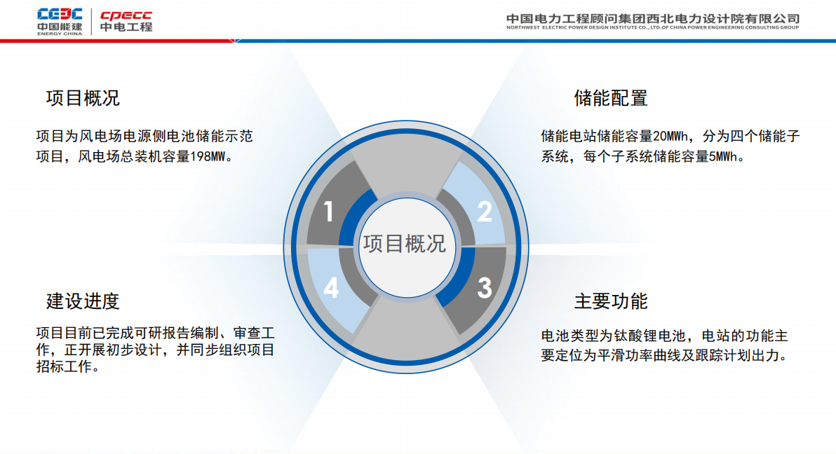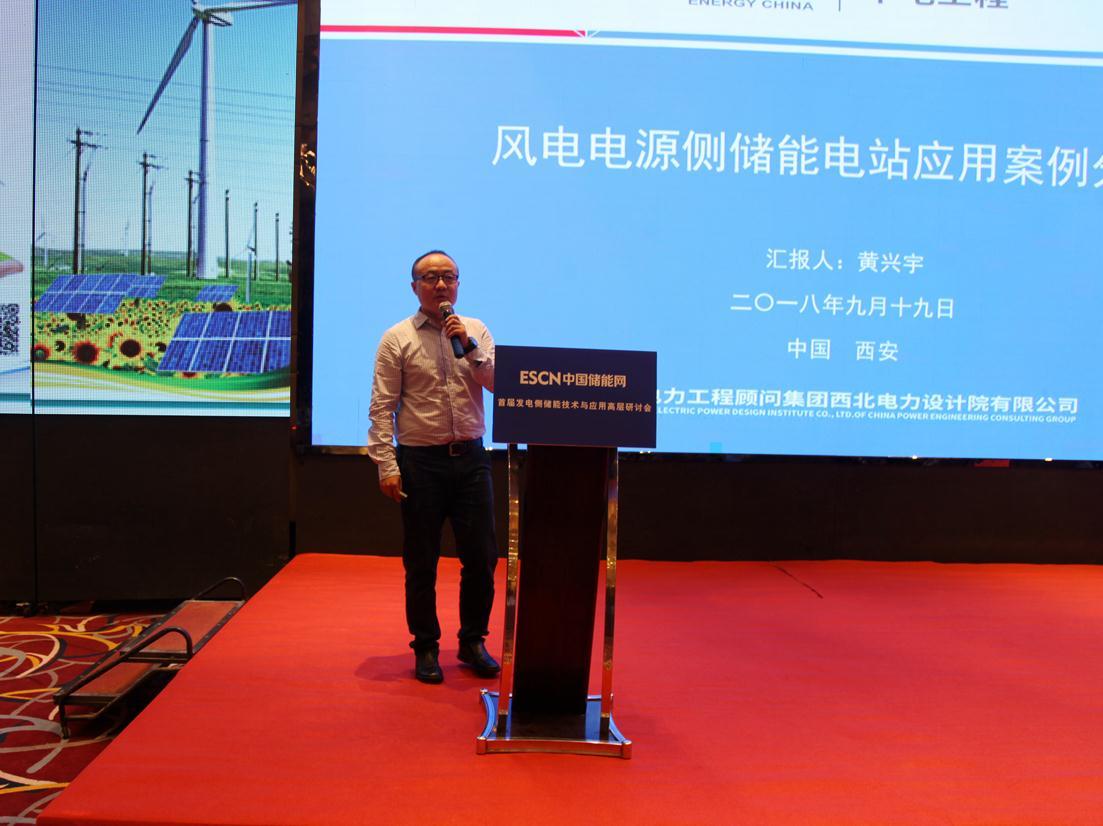中國電力工程顧問集團西北電力設計院有限公司新能源開發(fā)分公司設計總工程師黃興宇出席了本次會議,并發(fā)表了題為《風電電源側儲能電站的應用案例》的報告,以下為報告全文: