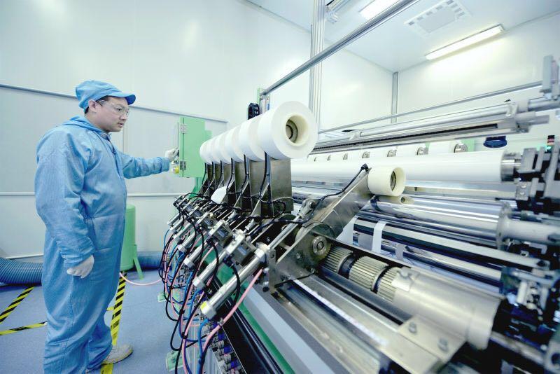 該負(fù)責(zé)人表示,公司從國外引進先進制造設(shè)備,研發(fā)出全球最先進的鋰電池隔離膜的濕法基膜制造技術(shù),形成自主知識產(chǎn)權(quán)的功能性涂布膜的制造技術(shù)。這種功能性涂布隔膜已被廣泛應(yīng)用于國內(nèi)和國際一流動力鋰電池的制造,為動力鋰電池的安全性和高能量密度性能提供最佳設(shè)計方案?!岸鹘莸墓δ苄酝坎几裟ぜ夹g(shù)和產(chǎn)能,均已居全球領(lǐng)先地位”。該負(fù)責(zé)人說。