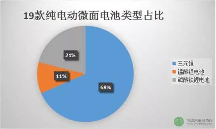 19款電動(dòng)微面車型中,電池的類型有3種:磷酸鐵鋰電池、錳酸鋰電池、三元鋰電池。其中搭載三元鋰電池有13款車型,磷酸鐵鋰電池4款,錳酸鋰電池2款。由此可見(jiàn),在電動(dòng)微面中,三元電池備受車主青睞。