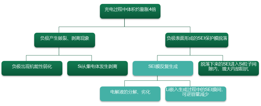 圖1:將Si負(fù)極應(yīng)用于鋰離子電池的主要問題