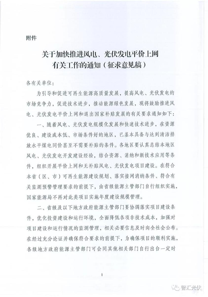 中國儲能網(wǎng)訊:近日,國家能源局發(fā)布《關(guān)于加快推進風電、光伏發(fā)電平價上網(wǎng)有關(guān)工作的通知》,將加速推進風電、光伏項目的平價上網(wǎng)步伐!