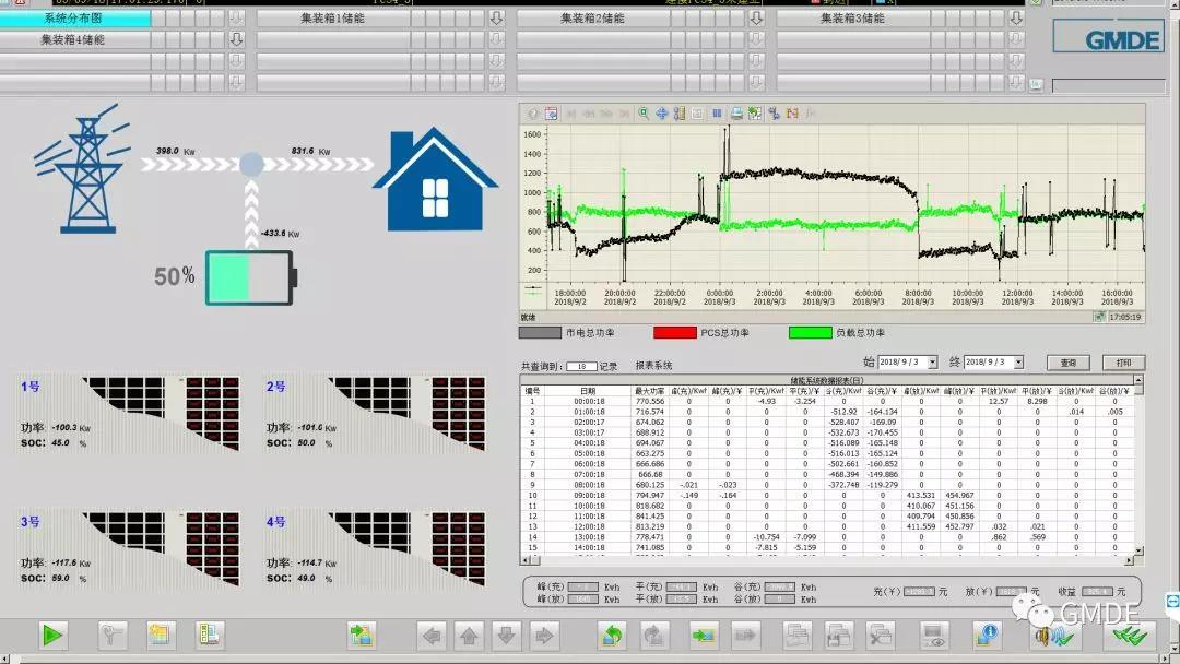 項(xiàng)目利用江蘇省峰谷價(jià)差優(yōu)勢,采用削峰填谷為主,需量調(diào)控為輔的控制策略用于白天生產(chǎn)照明,作為公司生產(chǎn)可靠用電的補(bǔ)充方式,谷電價(jià)階段廠區(qū)供電系統(tǒng)向儲(chǔ)能系統(tǒng)充電,峰電價(jià)階段儲(chǔ)能系統(tǒng)向廠區(qū)負(fù)載供電,以合同能源管理的商務(wù)模式跟客戶分享峰谷價(jià)差帶來的收益。該項(xiàng)目自投運(yùn)以來每天產(chǎn)生大約4500元的峰谷價(jià)差收益,預(yù)計(jì)5年內(nèi)即可收回投資成本。