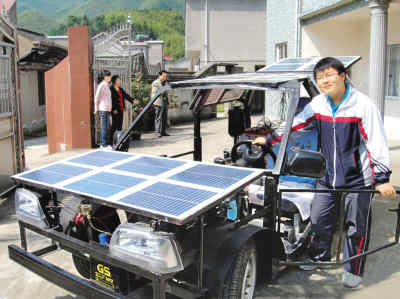 4月5日在浙江寧波朱振霖介紹他研發(fā)的太陽(yáng)能汽車。