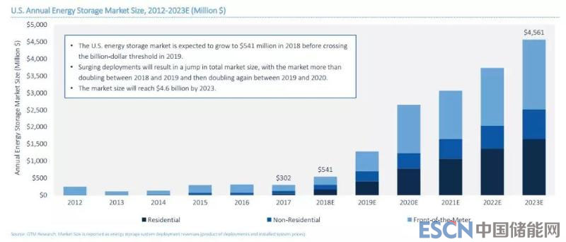 預(yù)計(jì)2018年美國(guó)儲(chǔ)能市場(chǎng)將增長(zhǎng)至5.41億美元,然后2019年突破十億美元。