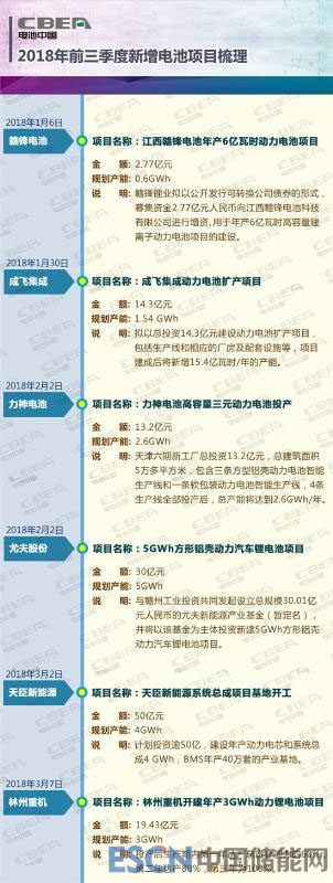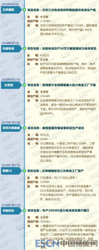 據(jù)電池中國(guó)網(wǎng)不完全統(tǒng)計(jì),2018年前三季度,我國(guó)動(dòng)力電池領(lǐng)域至少有24個(gè)投資項(xiàng)目,總投資額超1000億元,規(guī)劃產(chǎn)能超230GWh,資本對(duì)于動(dòng)力電池的投資熱度依然不減。