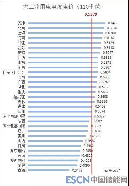 3、110千伏電壓等級(jí)下,全國平均電價(jià)約為0.5379元/千瓦時(shí),其中,天津最高為0.6485元/千瓦時(shí),青海最低為0.3472元/千瓦時(shí)。