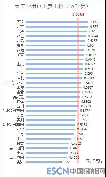 2、35千伏電壓等級(jí)下,全國平均電價(jià)約為0.5564元/千瓦時(shí),其中,天津最高為0.6585元/千瓦時(shí),青海最低為0.3572元/千瓦時(shí)。