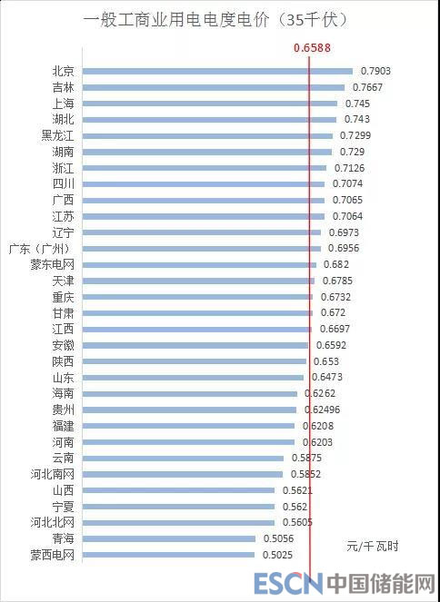 3、35千伏電壓等級(jí)下,全國平均電價(jià)約為0.6588元/千瓦時(shí),其中,北京最高為0.7903元/千瓦時(shí),蒙西電網(wǎng)最低為0.5025元/千瓦時(shí)。