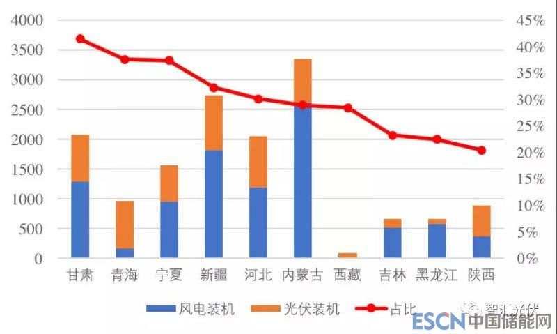 圖:新能源裝機(jī)超過(guò)當(dāng)?shù)乜傃b機(jī)20%的省份