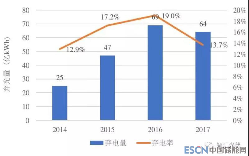 2017年,在國(guó)家電網(wǎng)的努力下,西北五省光伏電站的棄光率、棄光率都有明顯的降低。然而,即使如此,根據(jù)西北電監(jiān)局的統(tǒng)計(jì),西北五省2017年的棄光率仍然達(dá)到14.1%,近66.7億kWh的光伏電力被棄掉(如下表所示)。最高的新疆、甘肅的棄光率高達(dá)21.6%和20.8%!