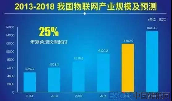 比較一下,若物聯(lián)網(wǎng)產(chǎn)業(yè)規(guī)模超過1萬億,則意味著其產(chǎn)業(yè)規(guī)模接近國內(nèi)住宿餐飲業(yè)的規(guī)模,而且2018年大概率會超過住宿餐飲業(yè)的規(guī)模,達到信息傳輸、軟件和信息技術(shù)服務(wù)業(yè)43%以上,達到交通運輸、倉儲和郵政業(yè)的1/3,達到租賃和商務(wù)服務(wù)業(yè)的一半以上。所以說超過1萬億的產(chǎn)業(yè)在國民經(jīng)濟中是一個龐大的存在,能夠問鼎國民經(jīng)濟前十大行業(yè)。