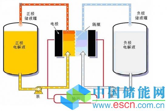人們不斷尋找正極和負(fù)極材料,提升能量密度,干電池、鎳鎘電池還是鋰電池,無(wú)論材料怎么升級(jí),傳統(tǒng)電池對(duì)活性物質(zhì)的利用率很低,能夠產(chǎn)生電能的物質(zhì)被包裹在必須的非活性物質(zhì)之中。在常見(jiàn)的鋰電池里面,鋰材料只含電池重量的2%左右,這些非活性物質(zhì)增加了電池成本,降低了活性物質(zhì)的利用率。因?yàn)閭鹘y(tǒng)電池的這些弱點(diǎn),誕生了液流電池。液流電池可以視為一個(gè)獨(dú)立的大電池,正負(fù)極電解液分別存放,集中反應(yīng)產(chǎn)生電能。這樣無(wú)需昂貴的附加材料,可以大大提升效率。