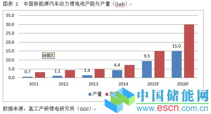 二、2016年動(dòng)力鋰電池產(chǎn)能利用率或?qū)?0%