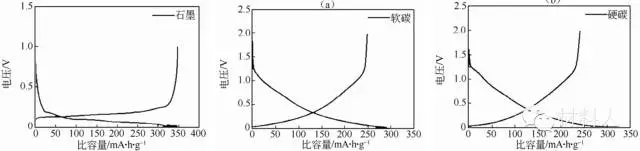 圖1石墨,硬碳和軟碳的充放電曲線