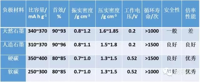 表1常見(jiàn)負(fù)極材料的性能對(duì)比