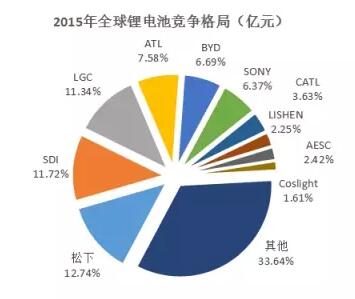新能源汽車的快速發(fā)展,帶來了動(dòng)力鋰電池的旺盛需求,而在新能源汽車發(fā)展最迅速的地區(qū),越來越多的中國(guó)鋰電池企業(yè)開始躋身于全球鋰電池前列。就鋰電池企業(yè)市場(chǎng)規(guī)模來看,2015年全球鋰電池前10家市場(chǎng)規(guī)模達(dá)到1041.53億元,占全球鋰電池市場(chǎng)的66.4%。三星、松下、LG依舊占據(jù)前三位,但是松下受益于特斯拉的帶動(dòng),成為全球最大的鋰電池企業(yè),LG在動(dòng)力電池領(lǐng)域市場(chǎng)占有率較高。在TOP10中,共有5家中國(guó)鋰電池企業(yè),分別是ATL、BYD、CATL、力神、國(guó)軒,中國(guó)鋰電池企業(yè)單個(gè)規(guī)模仍小于國(guó)外。