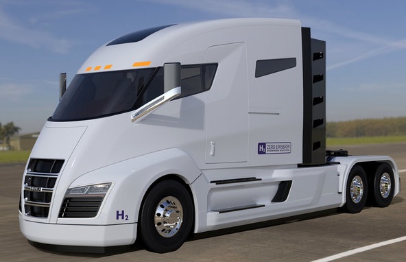 Nikola One電動牽引車使用氫燃料發(fā)電,加滿燃料需要15分鐘,在滿載狀態(tài)下續(xù)航里程為800-1200英里(約1290-1930公里)。跟傳統(tǒng)的插電式電動車相比,該車能節(jié)省不少的充電時間,并且續(xù)航里程更長。跟柴油或其他替代燃料動力車輛相比,該車排放更低。