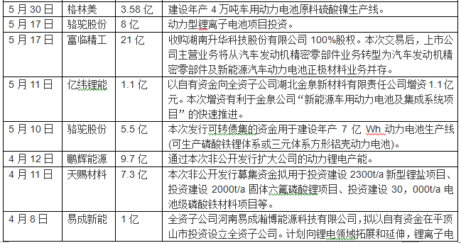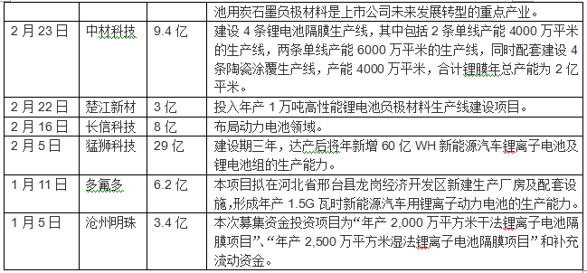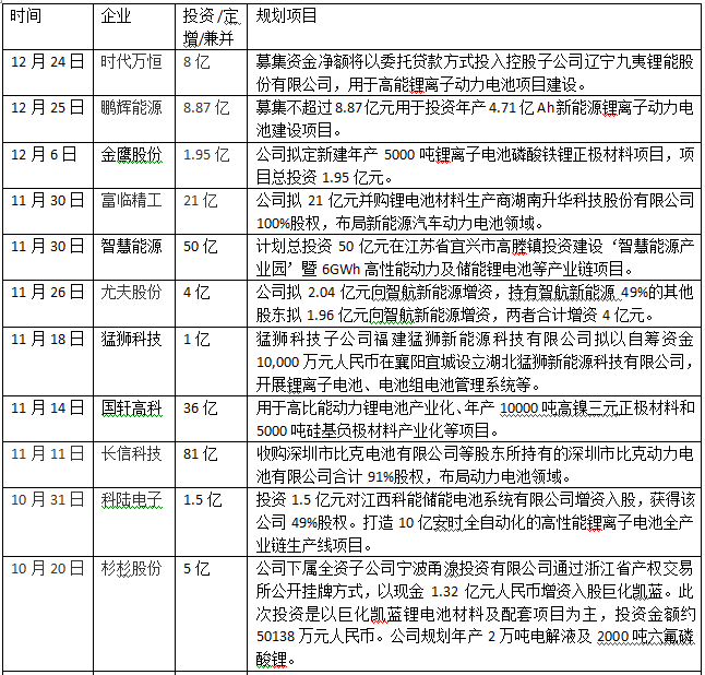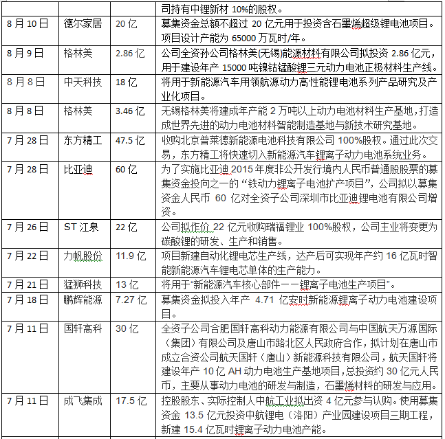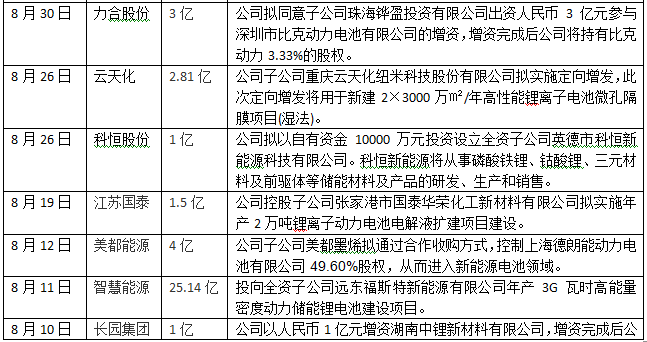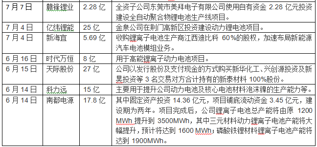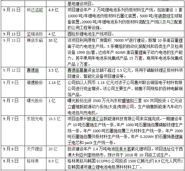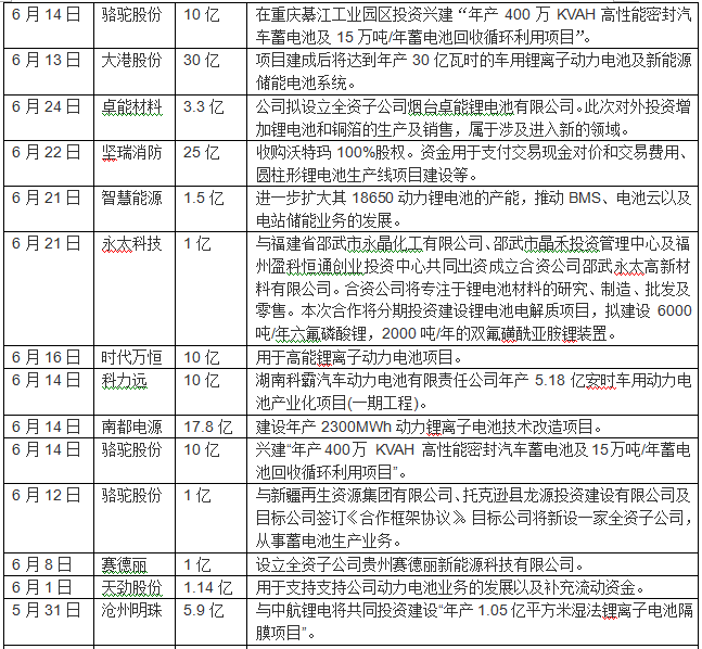 其中,比亞迪、智慧能源、大港股份、國軒高科、東方精工、橫店東磁一次性投向動(dòng)力電池領(lǐng)域超30億元,智慧能源、富臨精工、長信科技、國軒高科、西部資源、尤夫股份、堅(jiān)瑞消防、東旭光電、天齊鋰業(yè)、德爾家居、東方精工、ST江泉、億緯鋰能、天際股份、科力遠(yuǎn)、南都電源、堅(jiān)瑞消防、駱駝股份、猛獅科技等企業(yè)一次性投入資金超十億元。