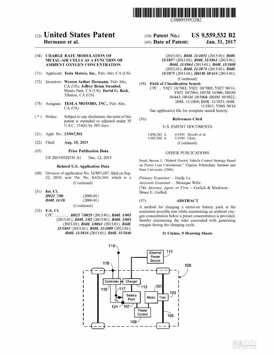 據(jù)報道,特斯拉首次于2010年申請金屬空氣電池方面的專利,在2013年,當(dāng)特斯拉開始獲得該技術(shù)的部分專利時,特斯拉進行了充電技術(shù)的部分修正。而在兩周前,特斯拉最終獲得了金屬空氣電池充電技術(shù)的專利。