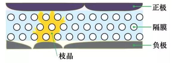 圖3 鋰離子電池內(nèi)部金屬枝晶的生長與隔膜的刺穿