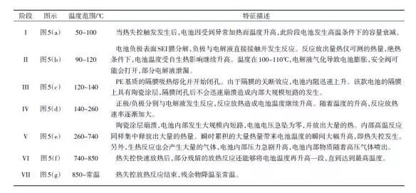 圖5 某款三元鋰離子動力電池熱失控不同階段的機理