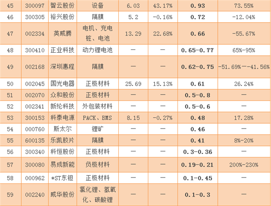 在70家已發(fā)布業(yè)績預(yù)告的企業(yè)中,凈利潤排名前10的鋰電上市公司分別是比亞迪、*ST金瑞、中天科技、天齊鋰業(yè)、佛山照明、必康股份、保千里、嘉化能源、鹽湖股份、勝利精密。