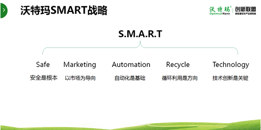 沃特瑪提出的S.M.A.R.T智慧戰(zhàn)略包括五部分,即Safe、Matketing、Automation、Recycle、Techology。安全是前提,市場(chǎng)為導(dǎo)向,自動(dòng)化為基礎(chǔ),循環(huán)利用是方向,技術(shù)創(chuàng)新是關(guān)鍵。