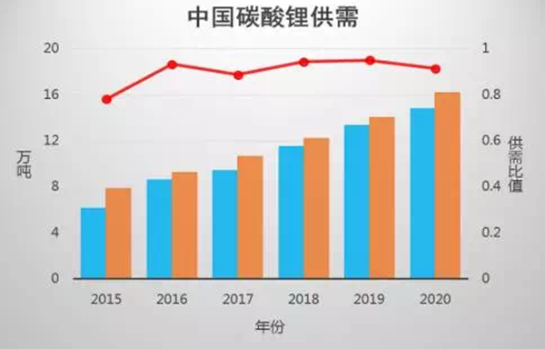 2015年,我國(guó)新能源汽車的產(chǎn)量及銷量分別達(dá)到34萬(wàn)輛和33萬(wàn)輛,與2014年相比產(chǎn)銷量飆升4倍,也由此帶動(dòng)了碳酸鋰需求的大幅增長(zhǎng)。從2015年開(kāi)始,我國(guó)碳酸鋰需求量一直遠(yuǎn)大于供給量。由于供求關(guān)系,目前無(wú)法提供足夠多的碳酸鋰,因此必然會(huì)導(dǎo)致價(jià)格上漲。