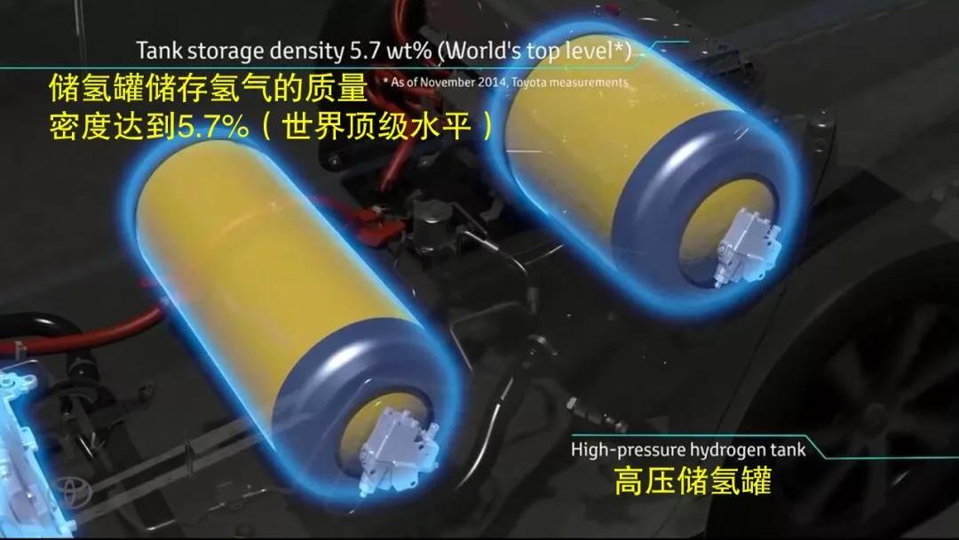 由于Mirai背著兩個儲氫罐,兩個儲氫罐一共的容量是122.4升,采用700個大氣壓儲存,被大家戲稱為,背著炸彈的汽車。