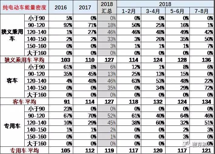 2018年的高續(xù)航里程車型的電池能量密度在140左右,而地續(xù)航里程的的產(chǎn)品的能量密度逐步提升。