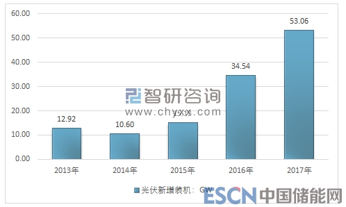 2013-2017年我國光伏新增統(tǒng)計(jì)