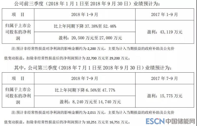 10月12日,東方日升新能源股份有限公司(以下簡稱“東方日升”)發(fā)布2018年前三季度業(yè)績預(yù)告。公告顯示,2018年1~9月公司預(yù)計(jì)歸屬于上市公司股東的凈利潤為2.05~2.7億元,比2017年同期的4.31億元同比下降37.38%~52.46%;其中,第三季度凈利潤預(yù)計(jì)為0.82~1.47億元,比2017年同期的1.58億元同比下降6.56~47.77%。