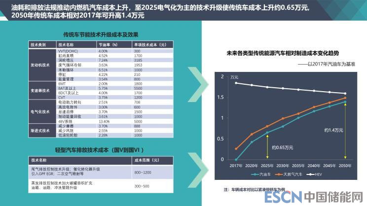傳統(tǒng)汽油車的市場份額不斷下滑的原因之一在于其制造成本不斷增加,比如相對2017年的基準車型來說,2050年其制造成本將上升1.4萬元。