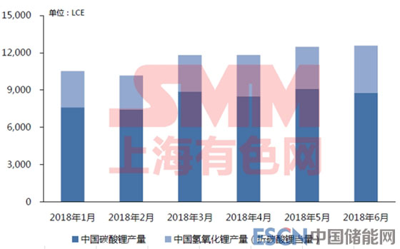 據(jù)SMM調(diào)研,2018年上半年中國(guó)碳酸鋰產(chǎn)量5萬噸,氫氧化鋰產(chǎn)量2.1萬噸,若除去鹽湖供應(yīng)1.1萬噸,對(duì)應(yīng)鋰消費(fèi)量5.8萬噸碳酸鋰當(dāng)量。SMM預(yù)計(jì)碳酸鋰產(chǎn)量11萬噸,同比增長(zhǎng)32.5%;氫氧化鋰產(chǎn)量5萬噸,同比增長(zhǎng)16%。