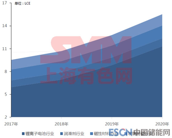 2017年與2020年中國(guó)鋰需求情況: