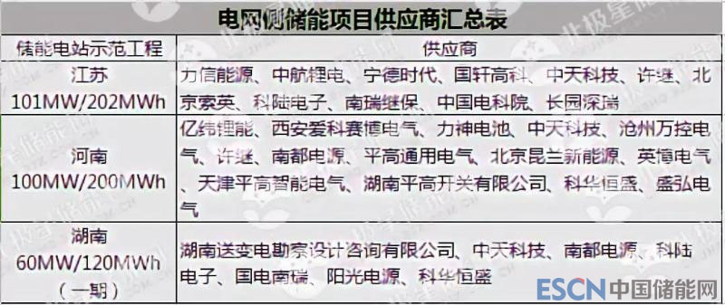 從目前已經(jīng)完成招標的電網(wǎng)側(cè)儲能項目來看,供應(yīng)商大多集中在少數(shù)幾家企業(yè)手里,具體如下圖所示: