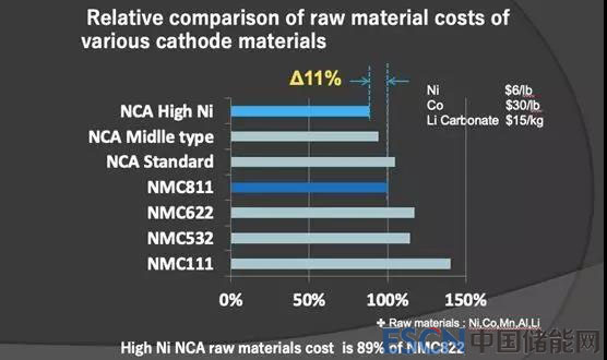 根據(jù)住友金屬的數(shù)據(jù)測算,NCA材料將會比NCM811材料價格低11%,這讓其在成本上更具競爭力。同時,隨著NCA材料生產(chǎn)工藝的改進(jìn)以及安全性能的提升,未來NCA將會在純電動車領(lǐng)域成為主流。