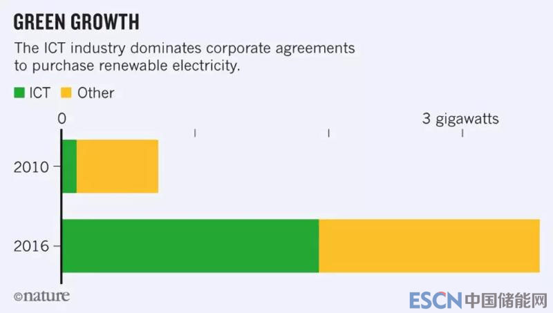 2011年,F(xiàn)acebook承諾100%使用可再生能源。 谷歌和蘋果緊隨其后于2012年做出相應(yīng)承諾。截至2017年,近20家互聯(lián)網(wǎng)公司也做了同樣的事情。(然而,百度,騰訊和阿里巴巴等中國互聯(lián)網(wǎng)巨頭并沒有跟隨。)在2010年前,IT公司對能源公司的可再生能源購買協(xié)議的貢獻微??;到2015年,他們占這些協(xié)議的數(shù)量達到了一半以上。谷歌是全球最大的可再生能源企業(yè)采購商。