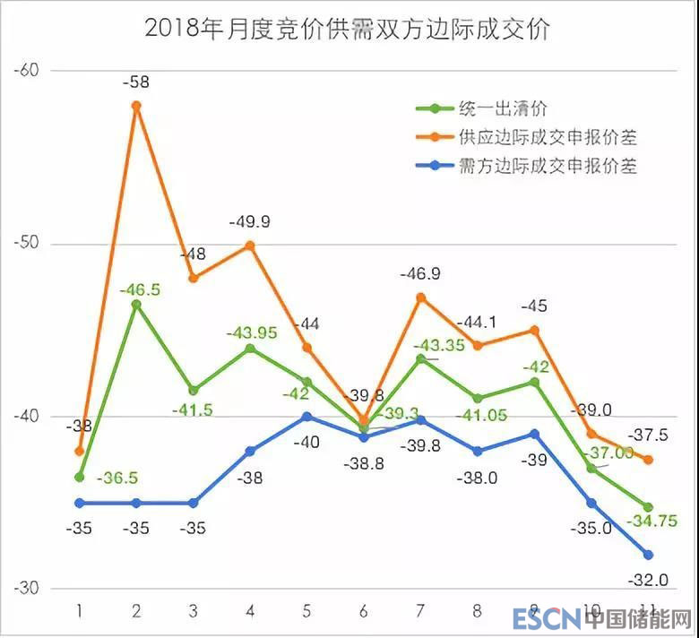 2018年1-11月的月度集中競價價差逐步收窄,直至本月,價格跌破歷史三年廣東電力月度集中競價的最低價差,出清價差-34.75厘/千瓦時。