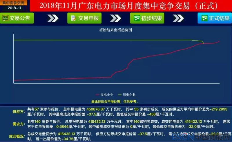 總成交電量初步為 415432.13 萬千瓦時。 供應方邊際成交申報價差 -37.5厘/千瓦時, 需求方邊際成交申報價差-32.0厘/千瓦時, 統(tǒng)一出清價差為-34.75厘/千瓦時。