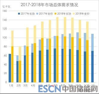 2018年11月份長協(xié)需求94.57億千瓦時,競價需求41.54億千瓦時,11月份總體需求136.11億千瓦時。